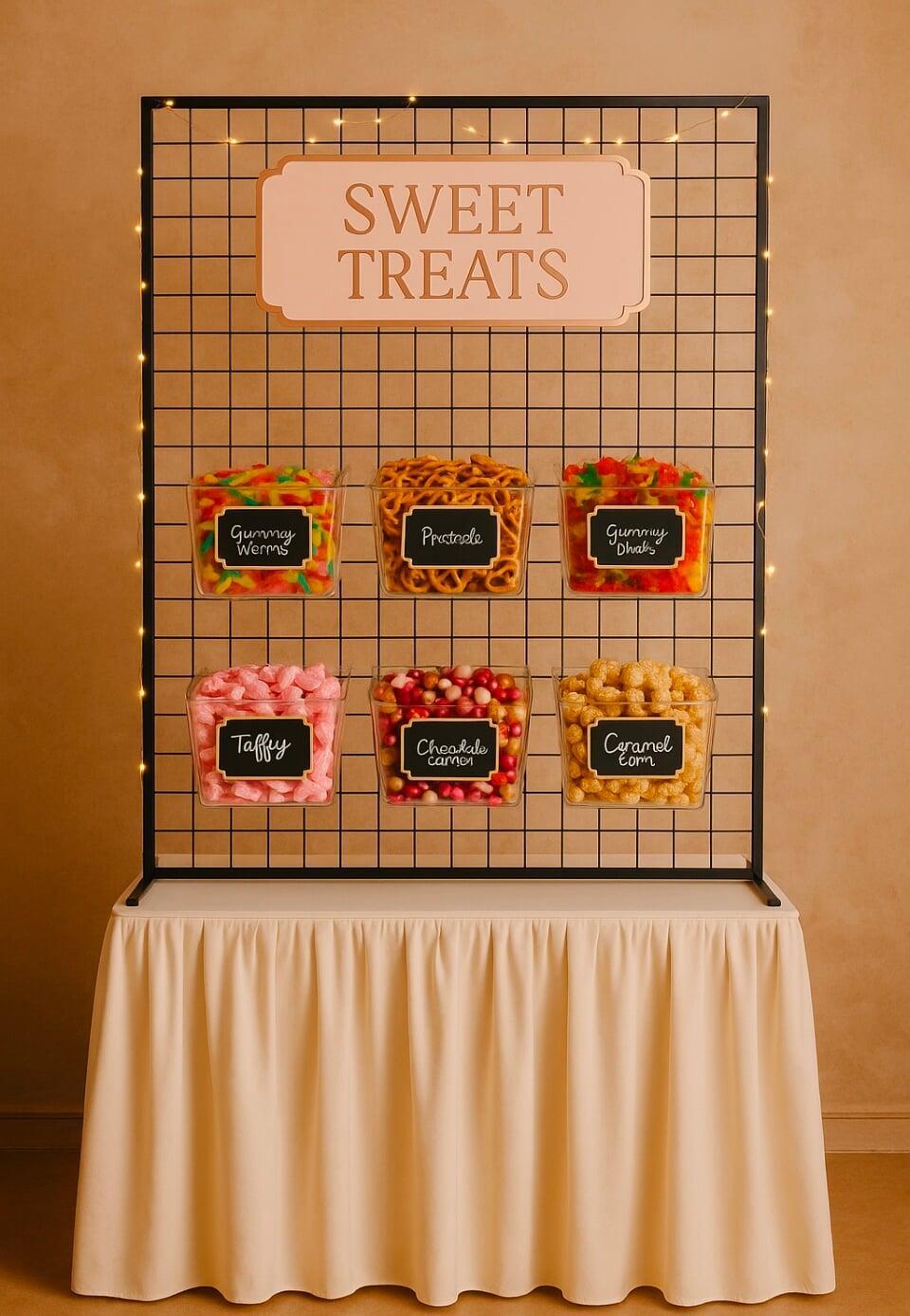 Make your event even sweeter with our Candy Wall! A colorful and eye-catching feature that doubles as a décor and a treat station. Perfect for birthdays and more! Guest of all ages will love it!